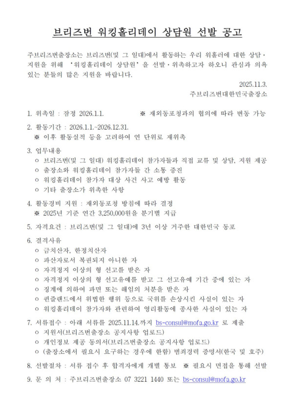 가정/데이트 폭력 무료 세미나 안내퀸즐랜드 한인 커뮤니티를 위한 DFV(가정·데이트 폭력) BKCA 세미나 ✔️ 폭력 예방 및 대처 방안 ✔️ 피해자 지원 서비스 & 법적 절차 안내✔️ 실제 사례 기반 대응 체계✔️ 익명 질문 및 사전 설문 참…