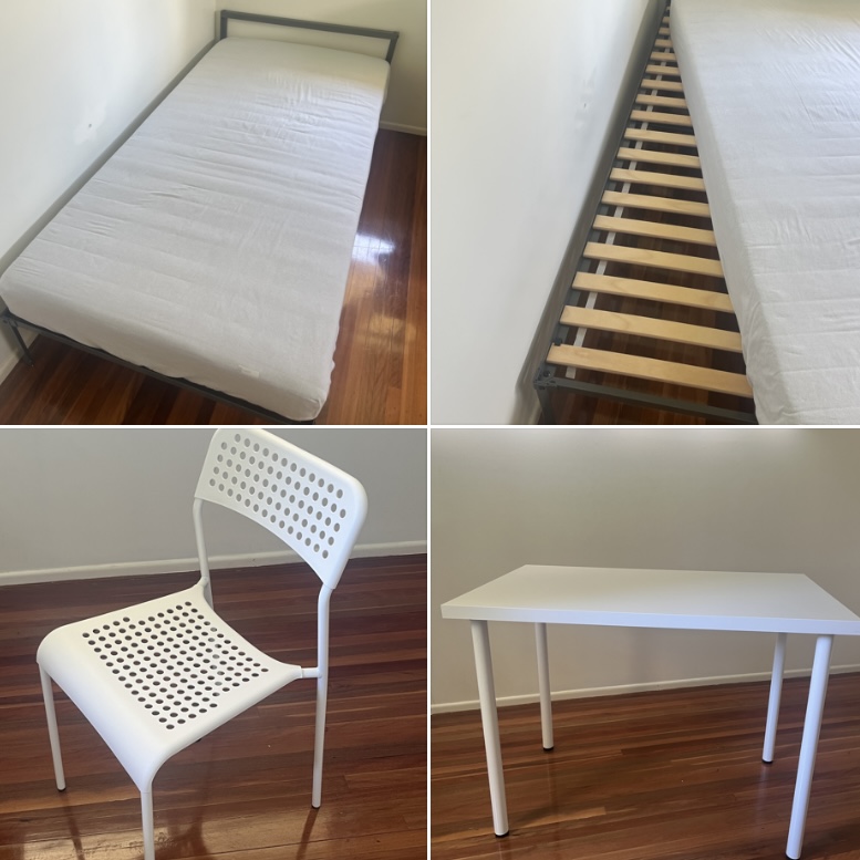 - 가격 : 침대+매트리스 100달러 / 책상+의자 30달러