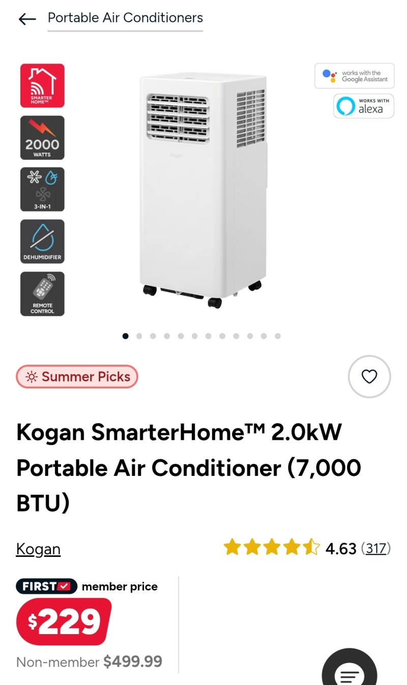 Kogan SmarterHome™ 2.0kW Portable Air Conditioner (7,000 BTU)