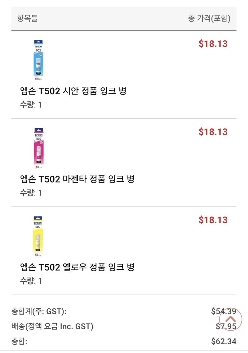 앱손 Epson 502 정품 칼라잉크 새제품 잉크 판매합니다.