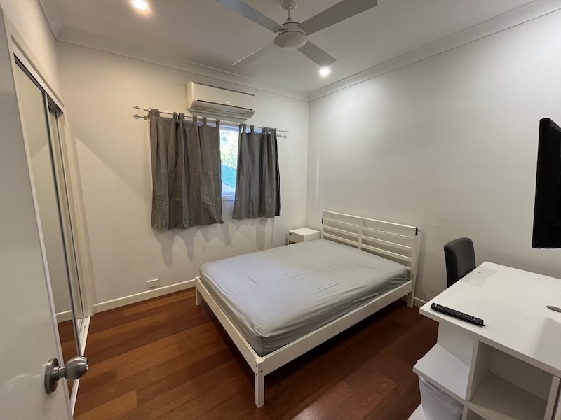 其中的一个标间,配double床,嵌入式衣帽间,书桌椅,冷暖空调 ,吊扇,电视。