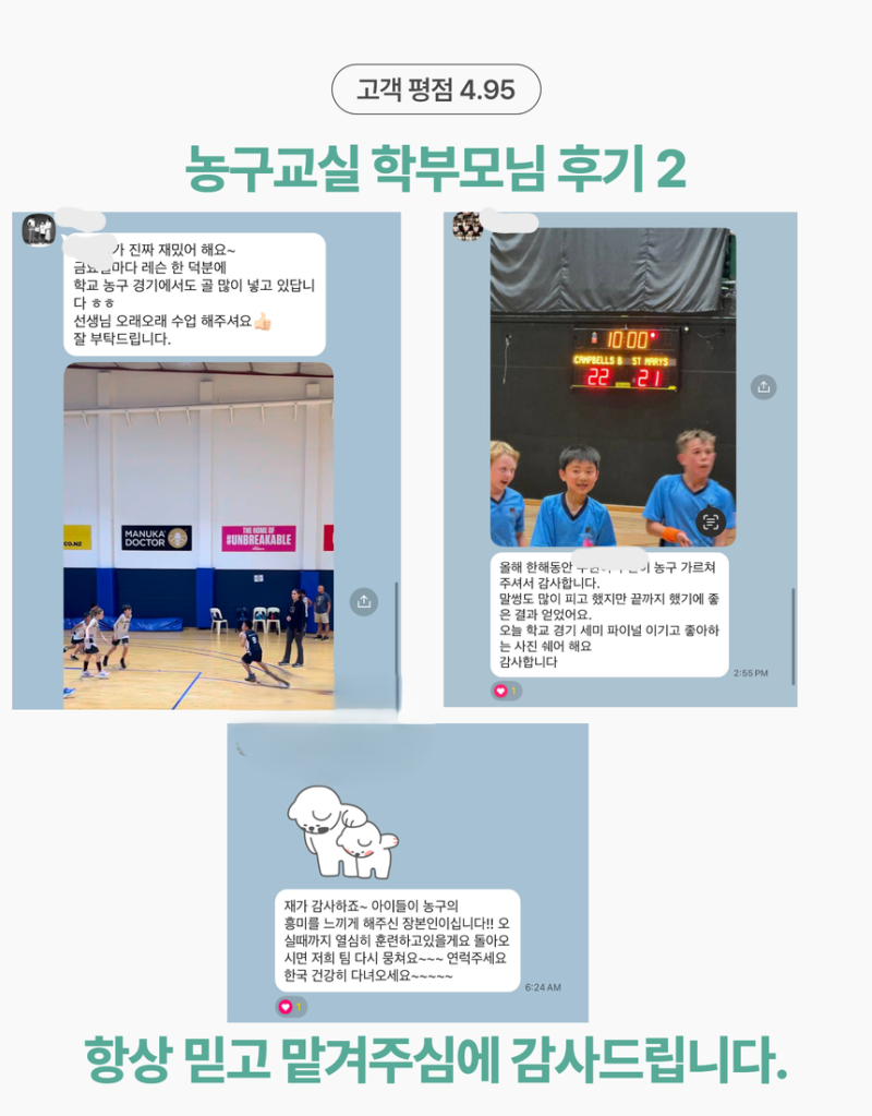 저희는 경력 있는 한국인 코치가 직접 트레이닝을 제공합니다. 기본기부터 기술 향상, 경기 이해까지 탄탄하게 지도합니다. ex) 뉴질랜드/한국