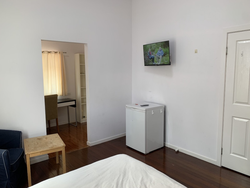 2,,Room +study is equipped with double bed, built-in wardrobe. Desk and chair, bookcase, armchair, coffee table. TV, fridge, air-conditioner, remote fan. High ceiling and City view .wi-fi!