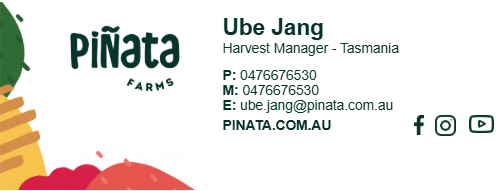 Piñata Farms Tasmania는 에이전트나 컨트랙터 없이, 농장 직속 공식 고용으로만 채용합니다.