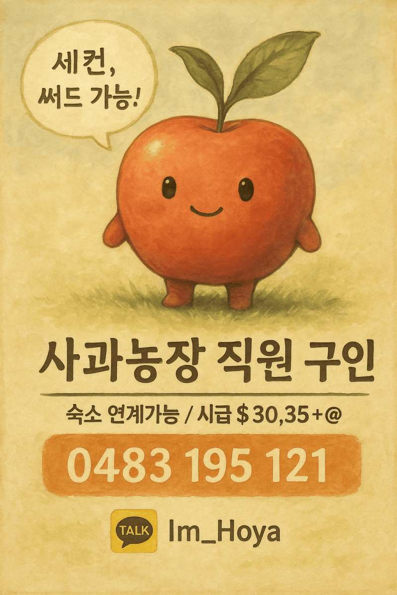 [스탠소프] (세컨,써드가능) 사과 농장에서 여성 팩커, 남성 박스보이를 구인하고 있습니다!