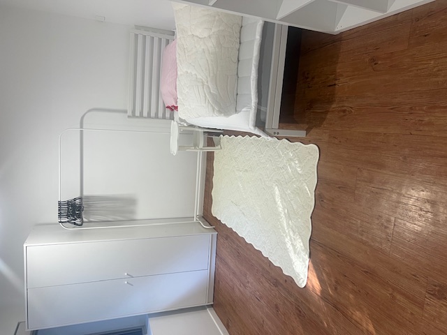 침대, 계절별 이불, 옷장, 헹거, 베드사이드 테이블, 베드사이드 램프, 러그, 책상, 책장 구비되어 있습니다.