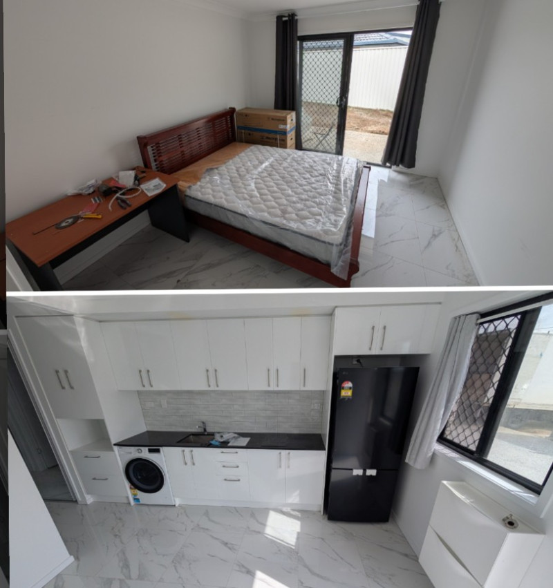You'll have your own kitchen, bathroom, bedroom and dedicated secure car park with remote. Furnished with all new bed, desk, fridge , table... All bills (power, AC, fast NBN,...) are included in the rent. $500/W for a couple or single.