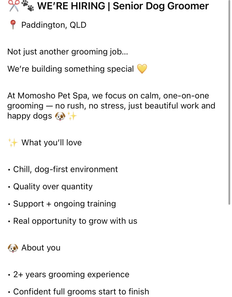 [기타] 브리즈번 애견미용사(그루머) 구합니다.