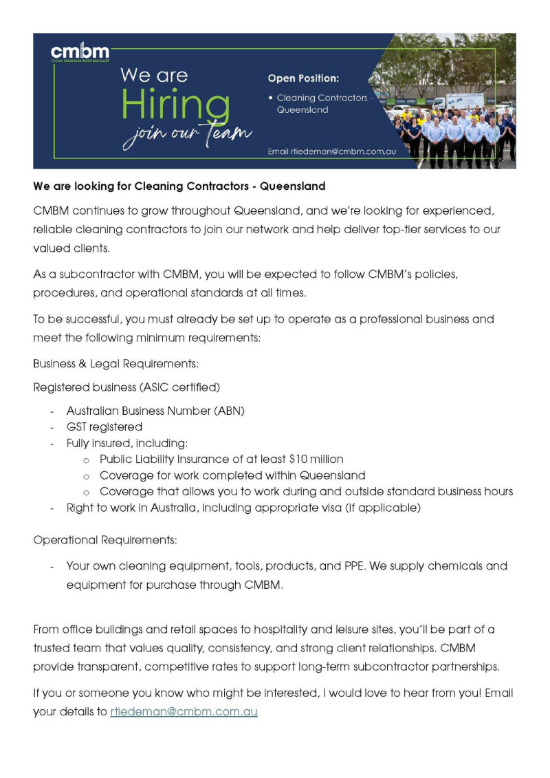 CMBM 에서 콘츄랙터 클리너 구인합니다.