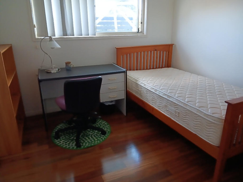 4. Fully furnished : A New Quality King Single bed, 3 drawer chest, book shelf and built in wardrobe.