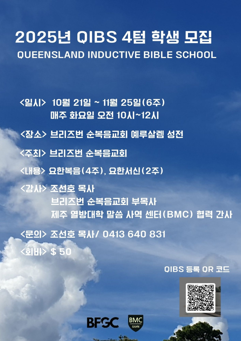 2025년 퀸즐랜드 귀납적 성경 연구학교(QIBS) 4텀 학생 모집
