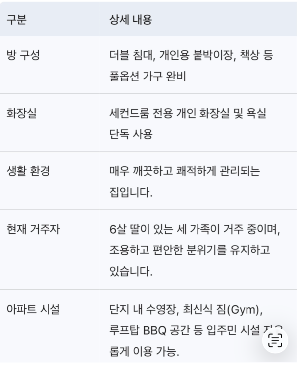 안녕하세요! 제가 렌트하고있는 아파트에 마스터룸 쓰시고 계시는 커플분들이 18/11/2025 에 나가시기로하셔서 그쯤에 들어오실분을 기간이 좀 많이 남았지만 구합니다! :)