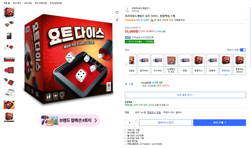 1. 요트다이스 보드게임 15불 - 비닐포장도 안뜯긴 새제품이에요.