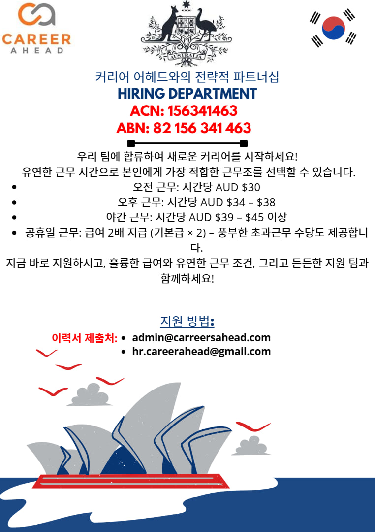 안녕하세요. Careers Ahead에서는 현재 다양한 흥미로운 커리어 기회를 제공하고 있습니다.
