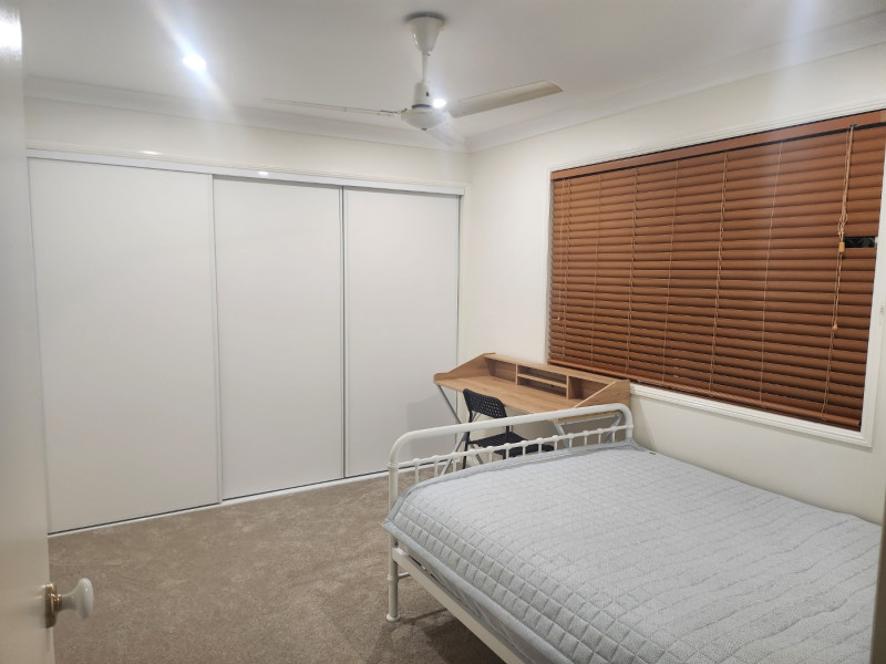 쉐어생분이 주로 쓰실 샤워실 + 독립 화장실, 냉장고 있고 방에는 더블 침대, 책상, 의자, 북박이 장, Ceiling Fan 등이 있습니다.