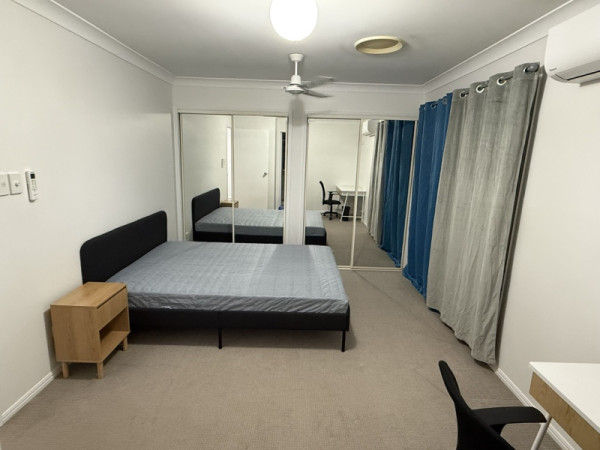 방 컨디션: 싱글침대 두개 사이드 테이블, 책상, 의자 하나