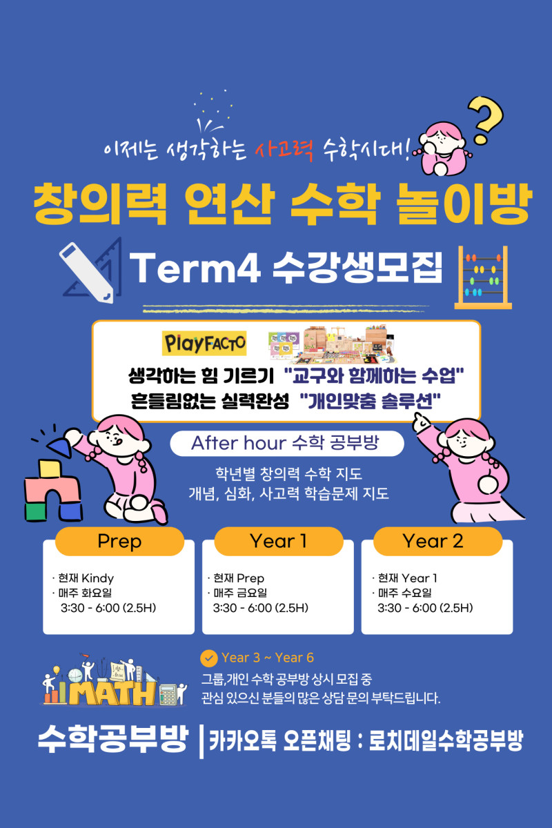 [교육] [첫 수업 무료 ????] 창의사고력 & 연산 수학 공부방 – Term 4 모집