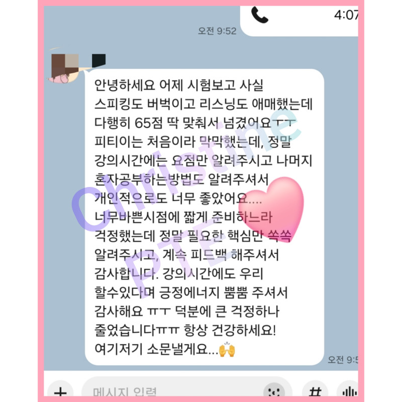 ☆과외 후 2달 만에 오버럴 88점, 이치 79 합격, 스피킹 만점! 리딩 만점! for 간호영주권 비자