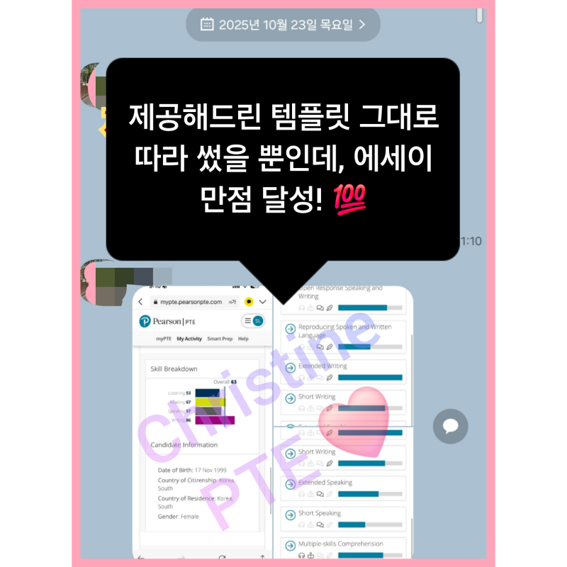 ☆과외 후 9일만에 #pte오버럴58 for #졸업비자
